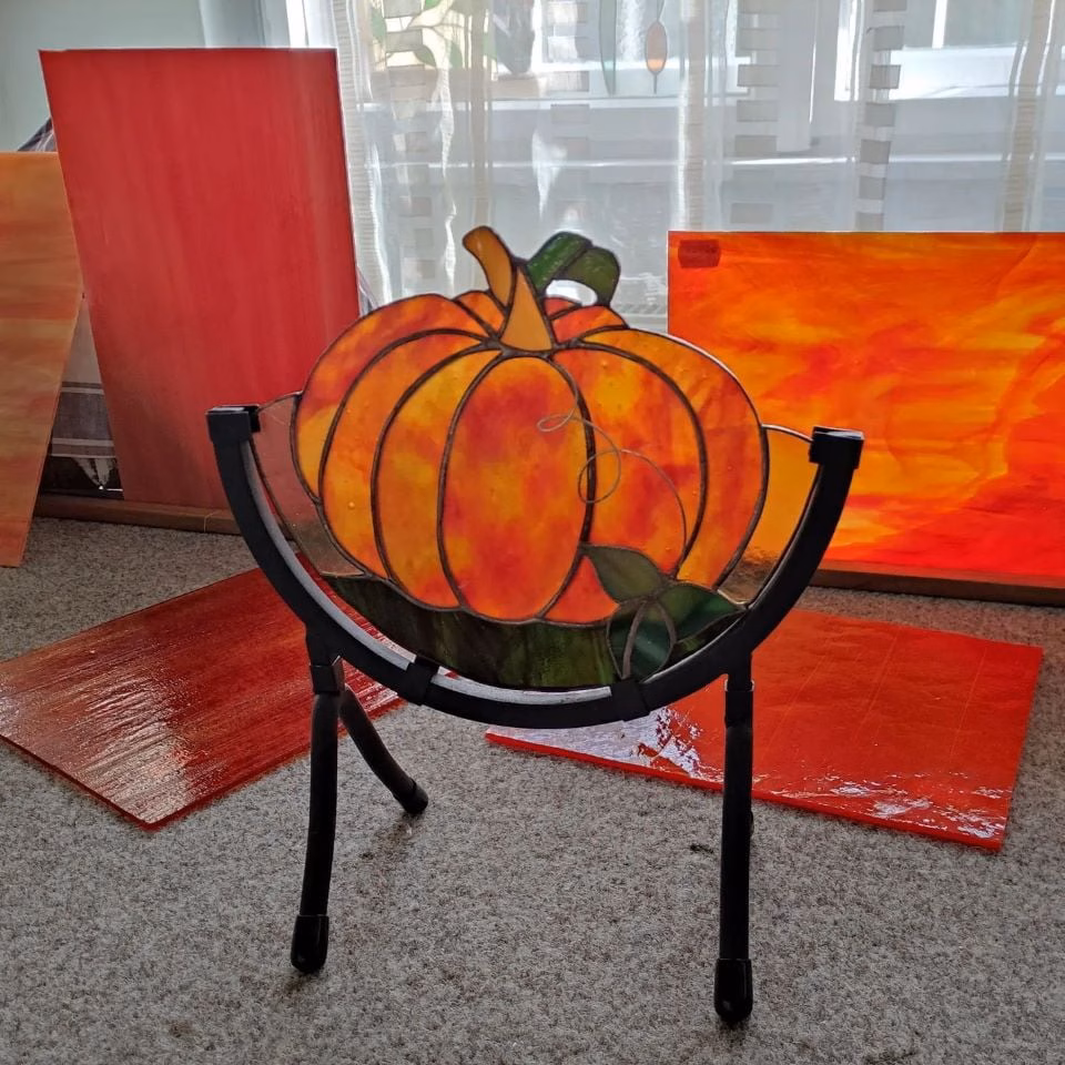 Pici időt szenteltünk az alkotásnak megint. Valahol megláttunk egy hasonló tököt, picit átrajzoltuk, Móni üveget keresett hozzá, aztán meglett az eredmény. Természetesen a tartó, amibe beletettük, az is saját termékünk és a mellette látható üvegeket is ötleteléshez mellé tettük.