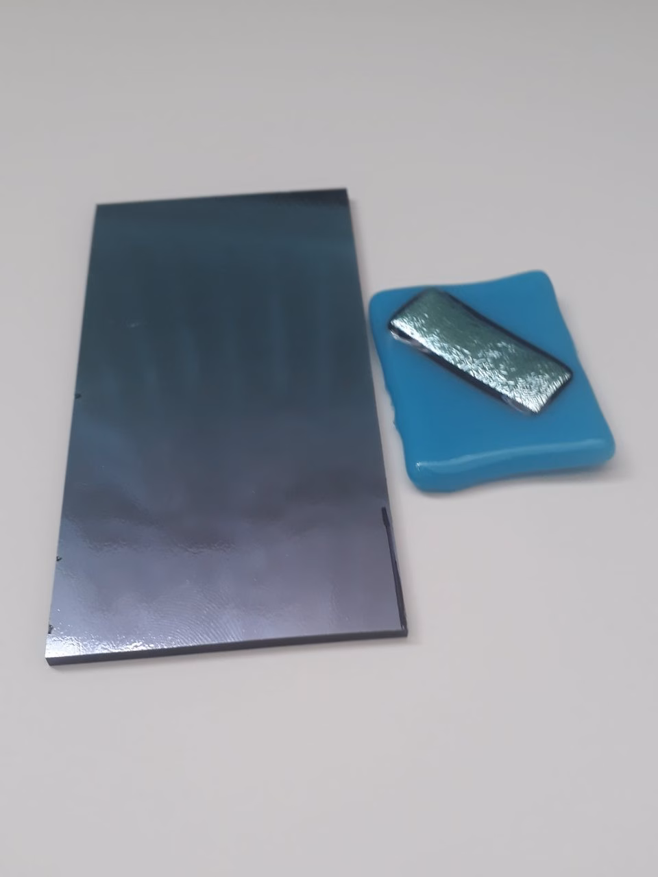 Olvasztás után ezüst színű lesz és felülete enyhén érdes marad. COE 96-es üvegekkel kompatibilis. A gyártó tájékoztatása szerint az üvegek nem mindig azonos árnyalatra égnek ki és akár táblán belül is lehetnek eltérések. Az ár 4,2*8,5 cm- es darabra vonatkozik.