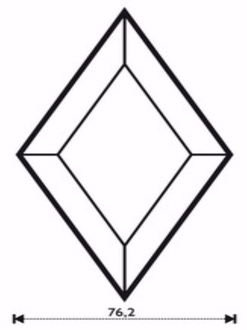 Fazettázott rombusz, melynek méretei : 76,2 cm x 152,4 cm.