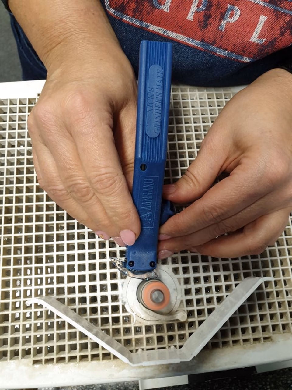 Segít a kisebb üvegdarabok csiszolásánál,mivel nem közvetlenül a csiszolandó darabot fogjuk meg.Így az ujjaink is védelmet kapnak.