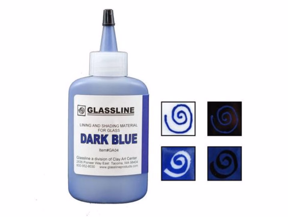 A Glassline kontúrfestékek könnyen használhatóak az üveg festésnél. Vízzel hígíthatóak. Nagyon vékony vonalak húzására fémtűre lesz szüksége. Ezek három méretben kaphatóak :finom, közepes és vastag, amelyeket az üveg szájára lehet feltenni. A festék alkalmazható az üvegek között és egy buborékos felületet eredményez. A Glassline festék bármely üvegfajtához alkalmazható. Az általunk ajánlott égetési hőfok 816 C°, de ez az igények szerint változtatható. Nagyon sok színárnyalatban kapható. A Glassline festékek ólommentesek. Egy doboz kb.0,6 dl festéket tartalmaz, illetve 100 gr.-ot