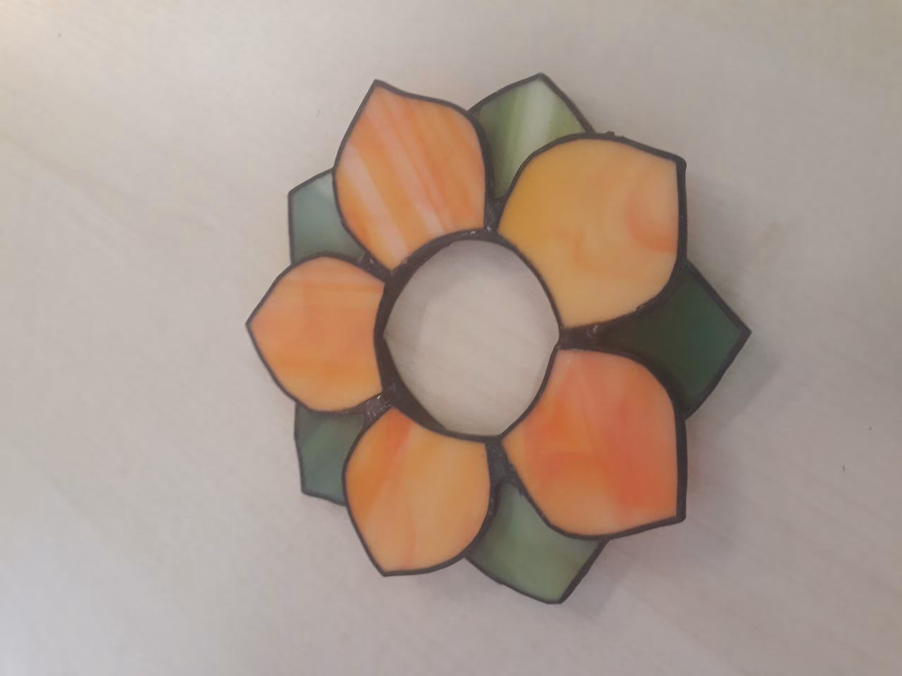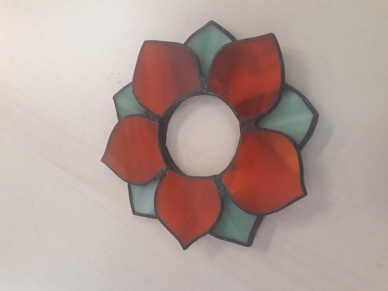 Tiffany technikával készült teamécses tartó.