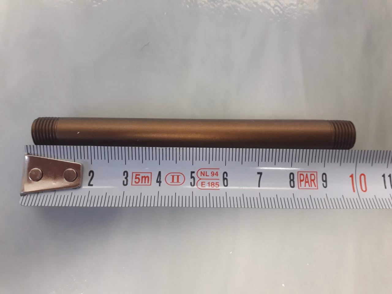 10 cm hosszú barnított cső, melynek mindkét oldala menetes.Általában csillárok felszereléséhez használják, de bármilyen más szereléshez is alkalmas.