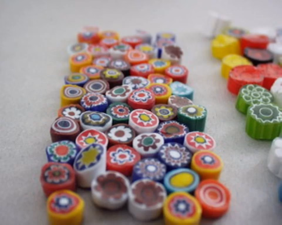 Eredeti Murano városában készített apró virágocska mintás üvegdarabok, melyek vegyes színűek és mintájúak. Az ár 20 grammra vonatkozik.