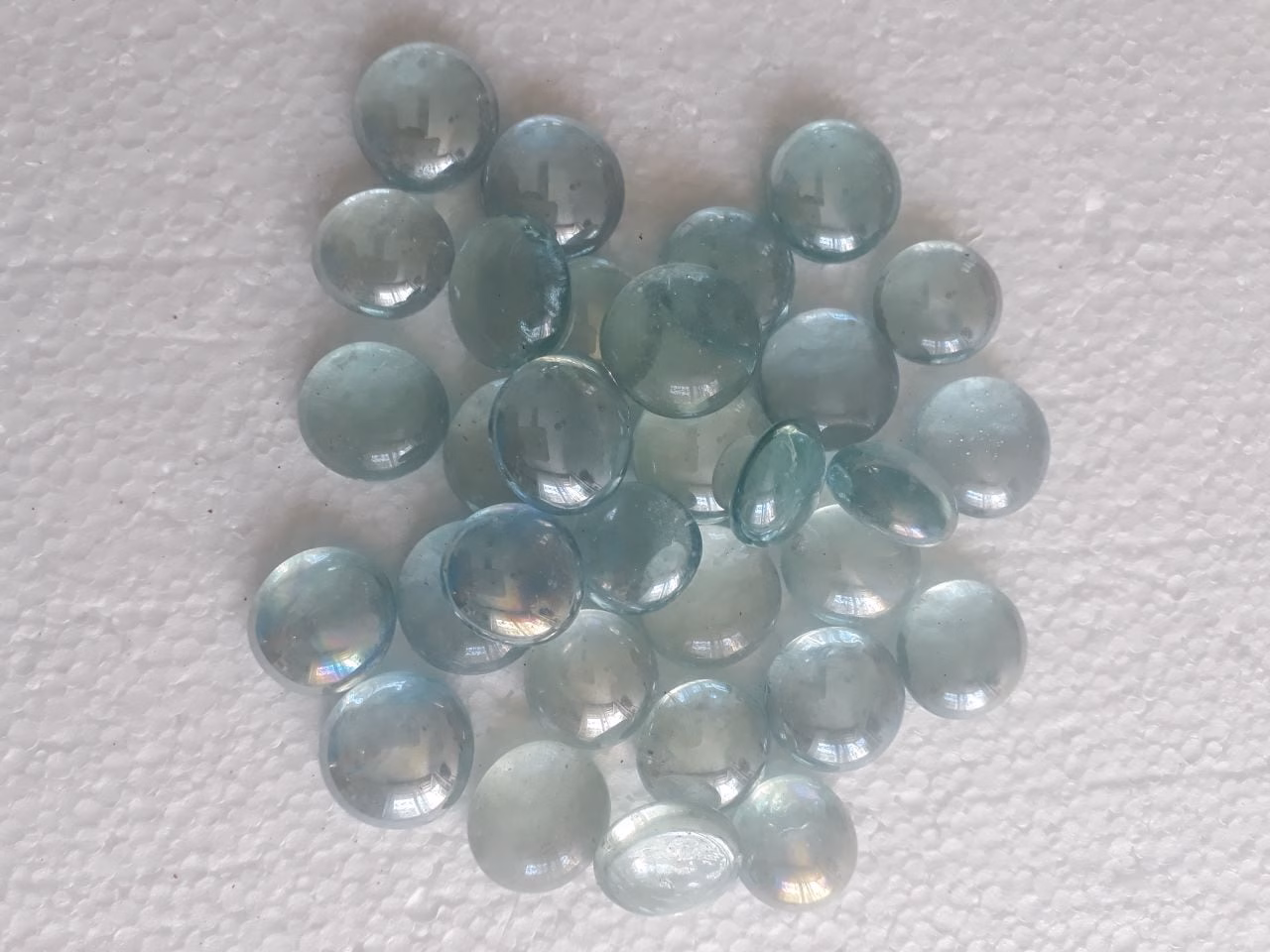 Áttetsző vízkék üvegkavics.