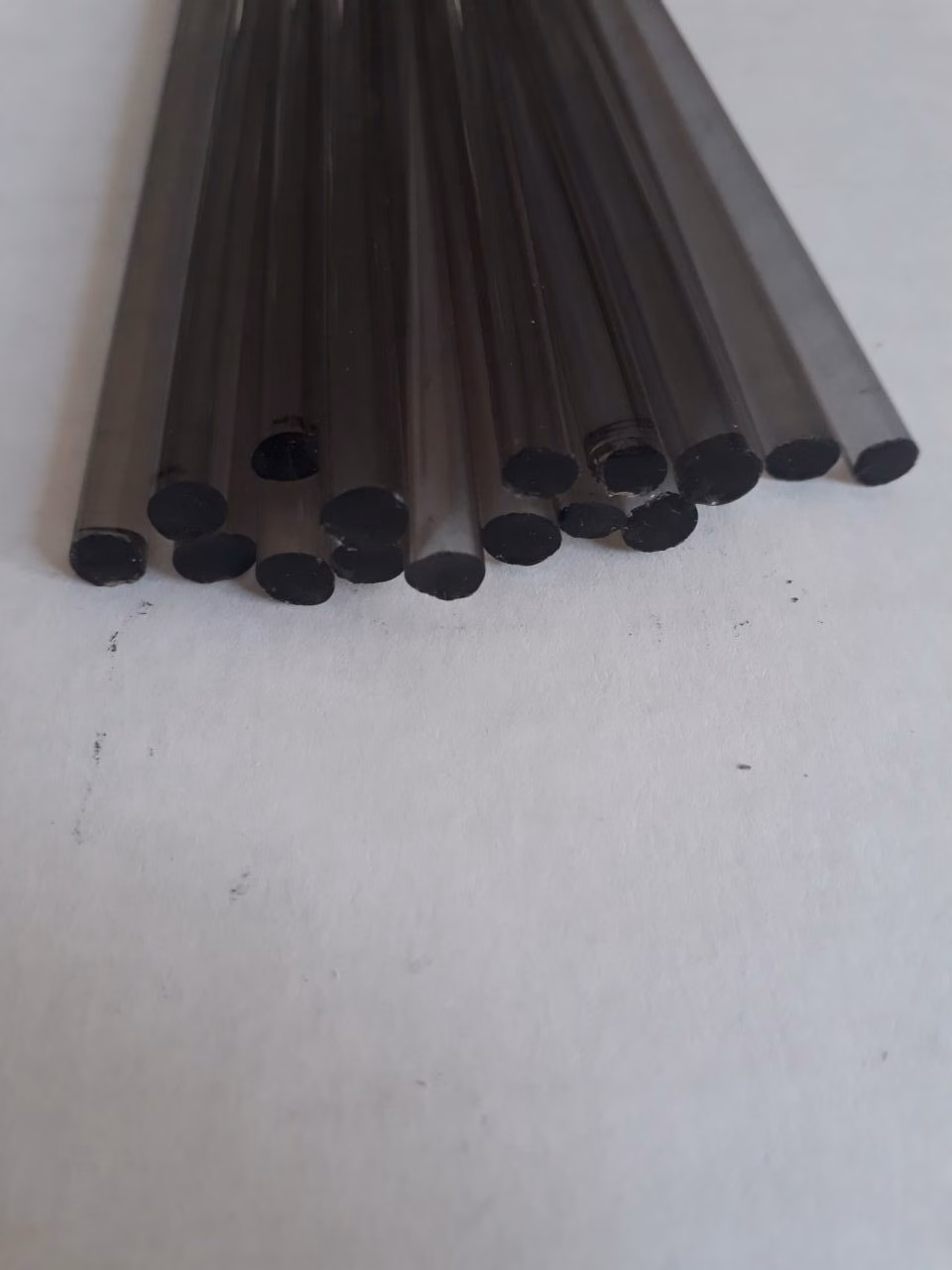 Moretti üvegrúd, melynek a COE értéke 104. 1 rúd általában 0,04 kg és 50 cm hosszú.