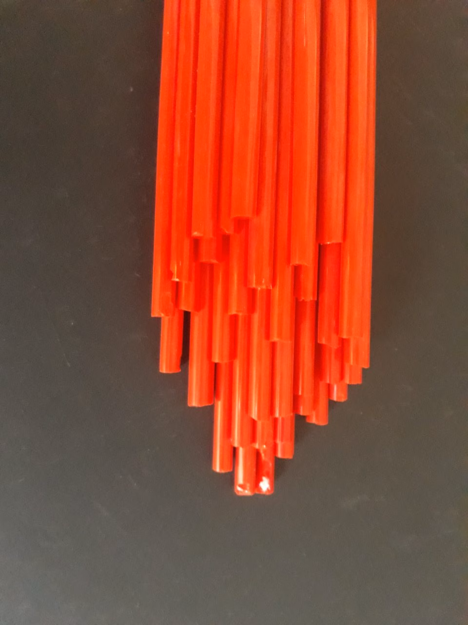 Moretti üvegrúd, melynek a COE értéke 104. 1 rúd általában 0,04 kg és 50 cm hosszú.