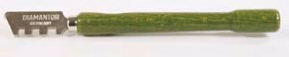 Fanyelű üvegvágó, kerek famarkolattal és egy acélkerékkel.