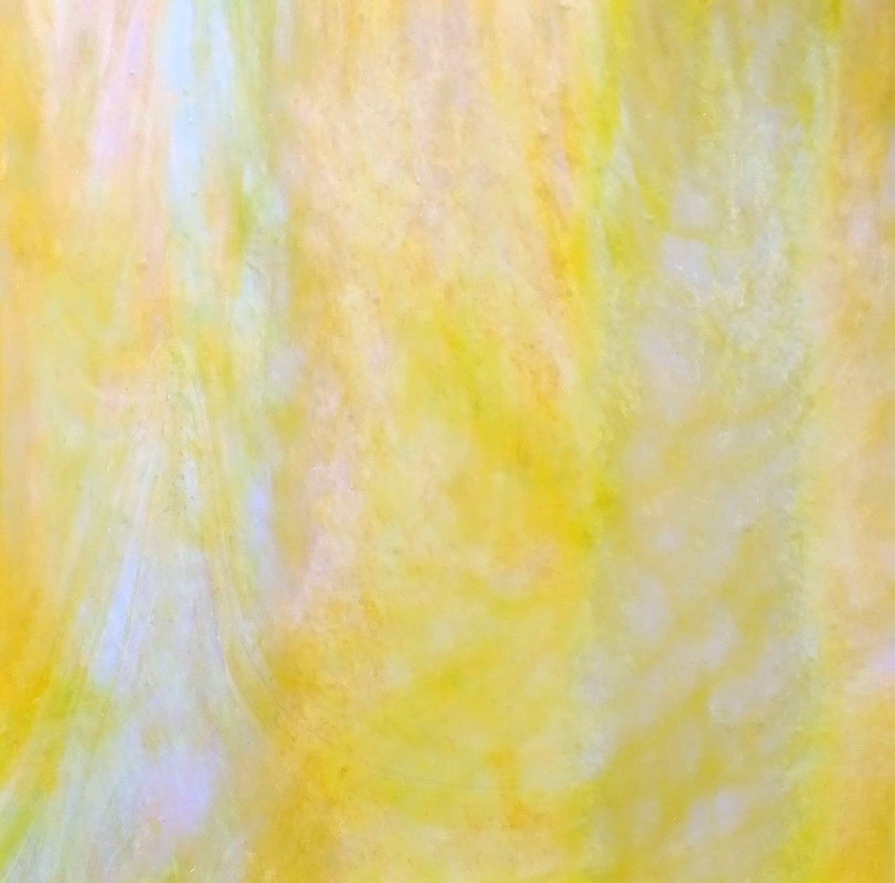 Fehér és sárga részek keverednek egyenlőtlenül és egy oldalán irizáló üveg.