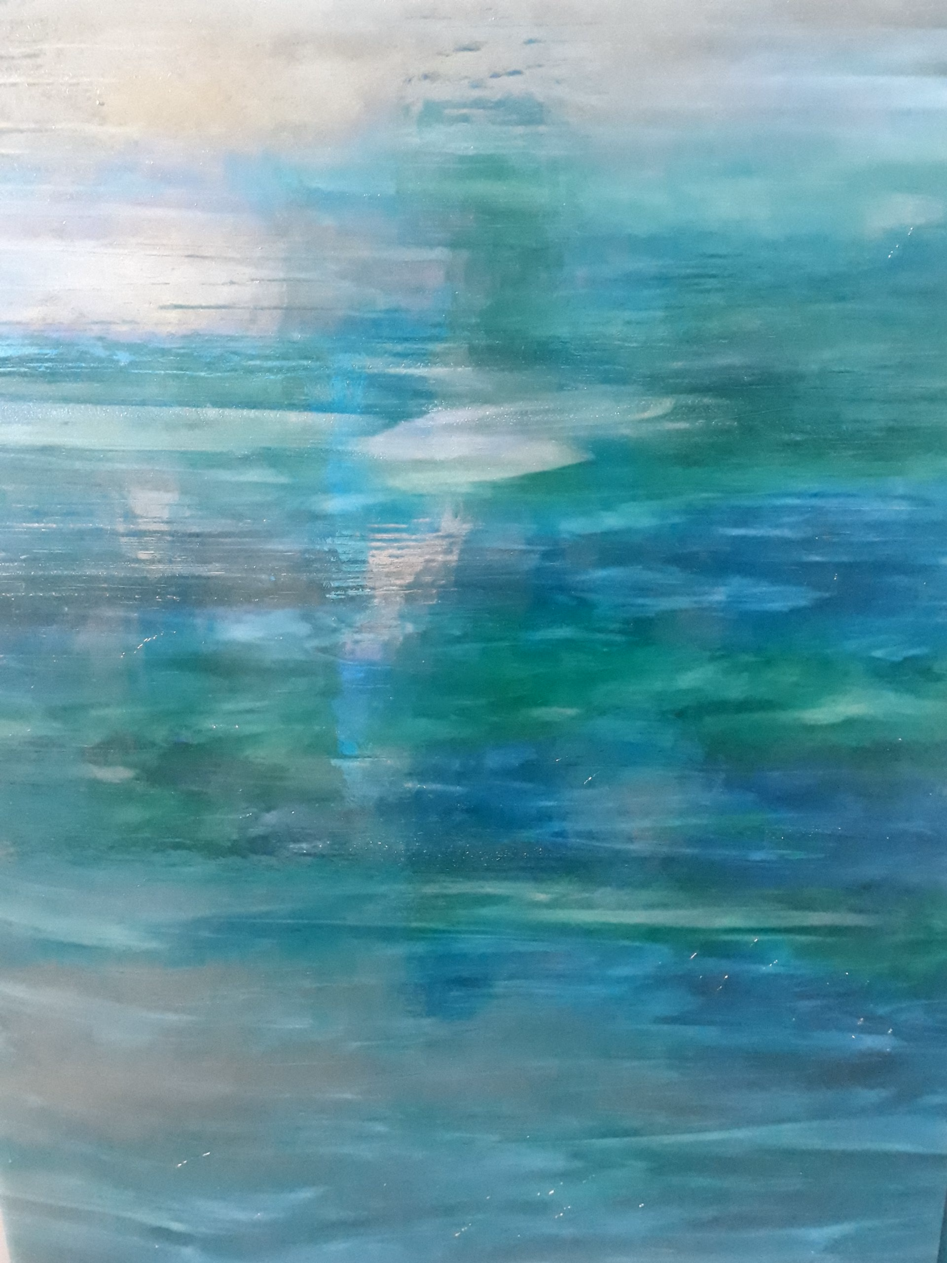 Tengerzöld részek keverednek egyenlőtlenül és egy oldalán irizáló üveg.